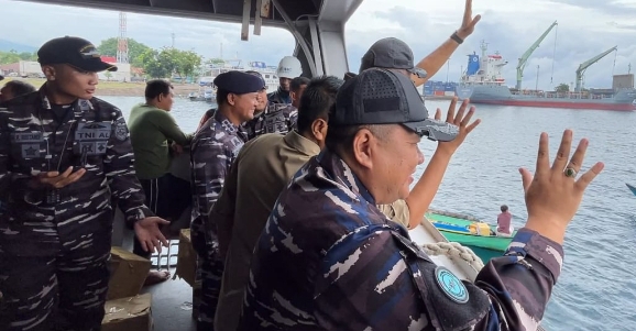TNI AL, Maumere- Gugus Tempur Laut (Guspurla) Koarmada II melalui unsur Bawah Kendali Operasi (BKO) KRI Diponegoro-365 melaksanakan kegiatan Bakti Sosial Pembagian Sembako...