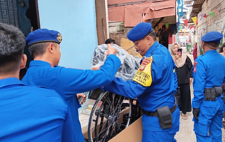 Jakarta – Direktorat Polairud Polda Metro Jaya memberikan bantuan kursi roda dan paket sembako kepada warga pesisir di kawasan Muara Angke, Kali Adem, Pluit, Penjaringan, Jakarta Utara. Bantuan diberikan kepada seorang lansia penderita stroke menahun sebagai bentuk kepedulian terhadap masyarakat pesisir, Kamis (26/2/2026).