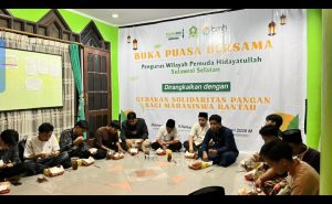 Makassar-engurus Wilayah (PW) Pemuda Hidayatullah Sulawesi Selatan menggelar kegiatan Buka Puasa Bersama yang dirangkaikan dengan Gerakan Solidaritas Pangan bagi Mahasiswa Rantau di Pesantren Mahasiswa Dai Makassar, Jumat (27/2/2026).