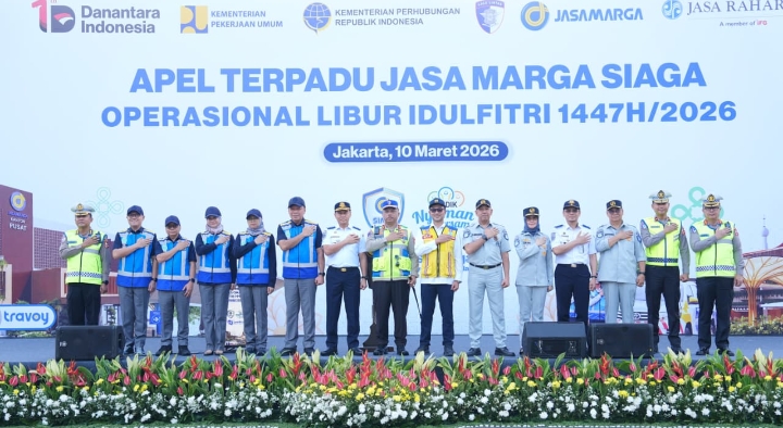 Jakarta- Bentuk sinergi dan kolaborasi lintas sektoral, Kepala Korps Lalu Lintas (Kakorlantas) Polri Irjen Pol Drs. Agus Suryonugroho, S.H., M.Hum., menghadiri Apel Terpadu Jasa Marga Siaga Operasional Libur Hari Raya Idul Fitri 1447 H/2026 di TMII, Selasa (10/3). Apel ini menjadi bagian dari persiapan menghadapi arus mudik dan balik dalam rangka pelaksanaan Operasi Ketupat 2026.