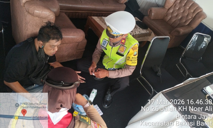 Bekasi – Kehadiran Pos Pengamanan (Pos Pam) di tengah arus mudik Lebaran 1447 H terbukti menjadi sandaran penting bagi para pengguna jalan yang mengalami kesulitan. Pada Selasa (17/3/2026) sore, seorang pemudik yang melintas di ruas Jalan KH Noer Ali, Bekasi Barat, mengalami kecelakaan tunggal. Akibat kejadian tersebut, korban mengalami luka-luka cukup serius pada bagian wajah dan tangan. Dengan sigap, personel kepolisian yang tengah berjaga langsung membawa korban ke area Pos Pam untuk mendapatkan pertolongan medis pertama.