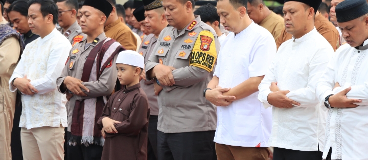 “Alhamdulillah, hari ini kami dapat melaksanakan salat Idul Fitri berjamaah bersama anggota dan masyarakat di lingkungan Mapolres. Ini merupakan momentum untuk mempererat tali silaturahmi dan sinergitas antara Polri dengan masyarakat,” ujar Kombes Pol Kusumo Wahyu Bintoro seusai pelaksanaan salat.