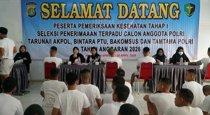 Jakarta – Seleksi Taruna/Taruni Akademi Kepolisian (Akpol) Tahun Anggaran 2026 di Polda Metro Jaya memasuki tahap pemeriksaan kesehatan (rikkes) tahap I. Kegiatan ini dilaksanakan di Biddokkes Polda Metro Jaya, Jakarta, pada 7 hingga 11 April 2026, dengan sebanyak 300 peserta mengikuti pemeriksaan pada hari pertama.
