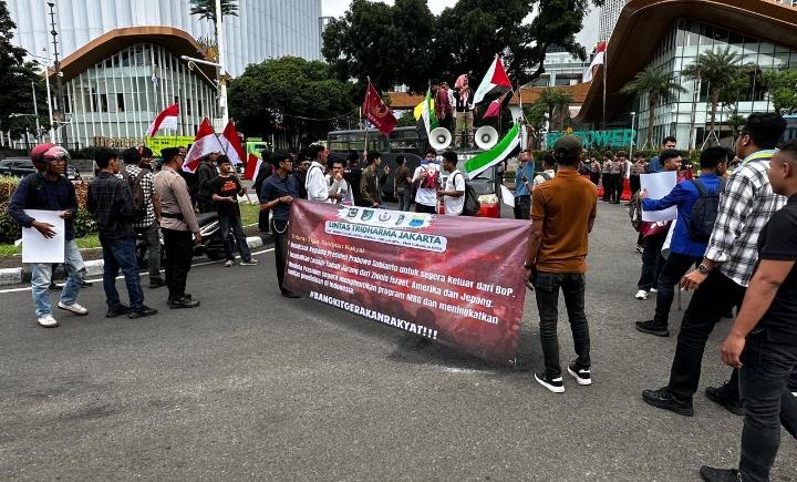 Jakarta – Polda Metro Jaya mengedepankan pelayanan humanis saat mengawal aksi gabungan organisasi mahasiswa Islam di Silang Monas Jalan Merdeka Selatan, Kamis (9/4/2026). Sekitar 50 peserta aksi hadir dalam kegiatan itu dengan pengamanan 157 personel Polri.
