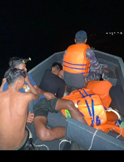 TNI AL, Dumai- KAL Tedung I-1-37 jajaran Lanal Dumai sigap laksanakan penyelamatan terhadap 4 (empat) orang nelayan yang meminta pertolongan dikarenakan sampan terbalik akibat gelombang tinggi di Perairan Selat Rupat, Jumat (24/3/2026).
